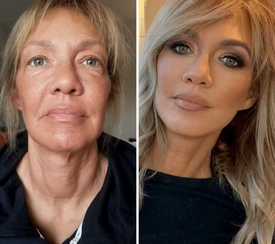 — Las reglas clásicas que habrás escuchado innumerables veces: un buen sueño y una alimentación adecuada, pero sería una mentira si te dijera que es suficiente. Mi marido es un especialista licenciado que trabaja en colaboración con laboratorios. Hace unos 10 años, fue el primero en desarrollar una fórmula rejuvenecedora llamada Simpla 360 . Yo fui la primera voluntaria en participar en los ensayos clínicos. En ese momento, tenía 37 años y, por supuesto, ya tenía arrugas, manchas pigmentadas, etc.